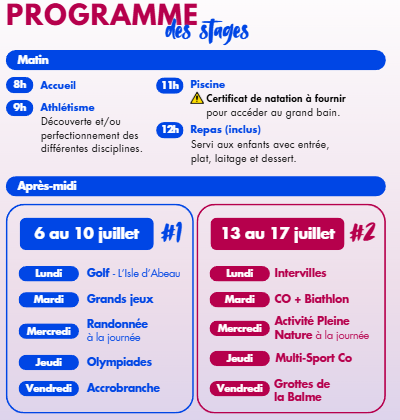 Comme chaque année, le CSBJ Athlétisme propose des stages pour les jeunes au mois de Juillet !